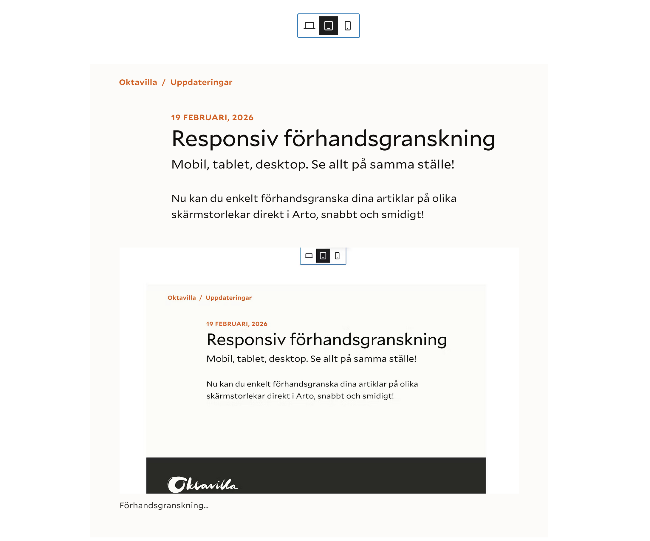 Nu kan du enkelt förhandsgranska dina artiklar på olika skärmstorlekar direkt i Arto, snabbt och smidigt!